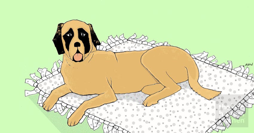 - Find out how big the bed needs to be. You can measure an old pet bed to find out how much fabric you need, or you can eyeball it. (One yard of fabric for the top piece and one yard of fabric for the bottom was perfect for my 100-pound mastiff to curl up on.)